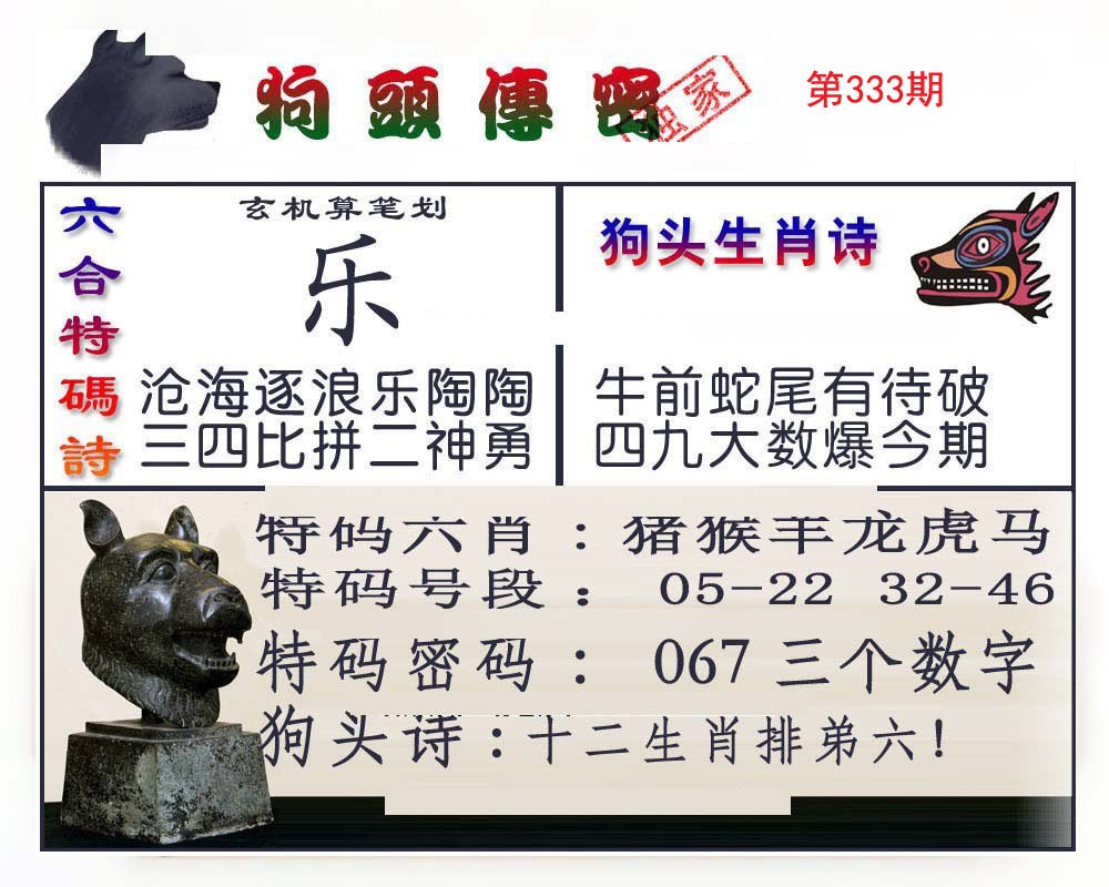328期绝杀中特【狗肖-3头-6尾-双数】开狗32 |